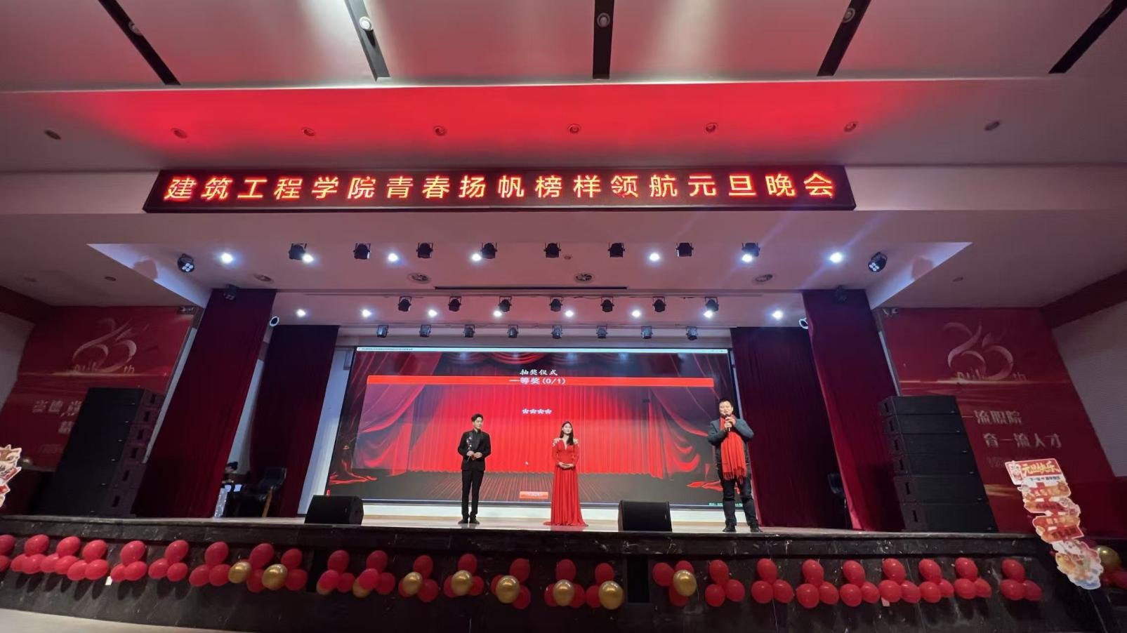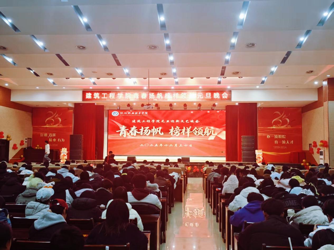 2025年12月30日晚,建筑工程学院“青春扬帆·榜样领航”迎新暨元旦晚会在学校大会议厅隆重举行。