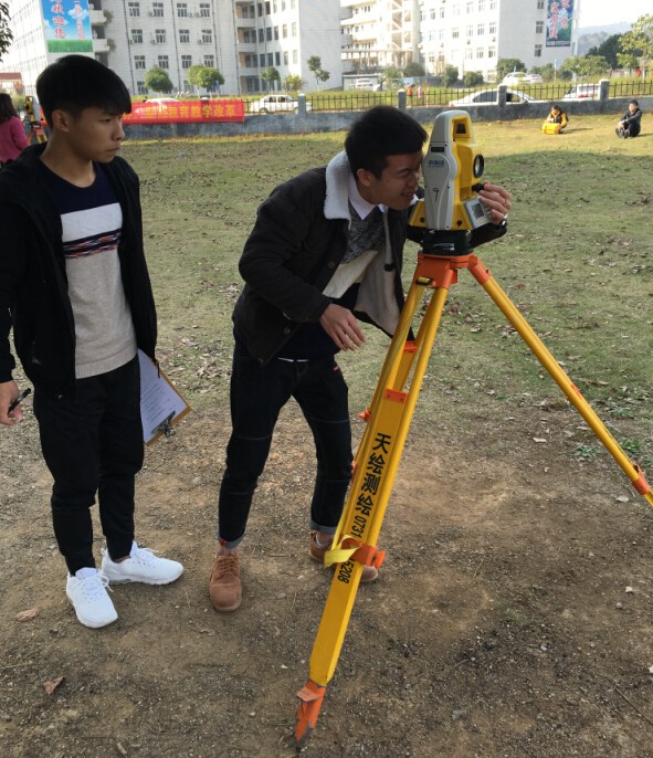当天下午14时,举办了以“促实践能力,展建工风采”为主题的建筑工程测量技能大赛。本次比赛共19组选手参赛,采用全站仪测量,分场地坐标放样和角度测量两个项目。